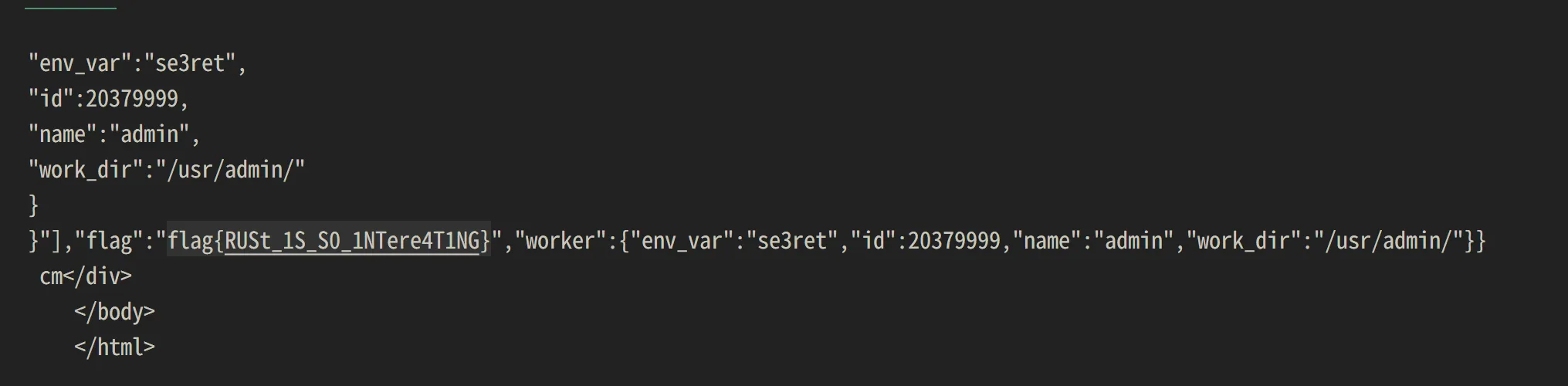 fetch("{% println!(__tera_context) %}")Error while rendering: Error { kind: Msg("Failed to parse '__tera_one_off'"), source: Some(Error { kind: Msg(" --> 18:35 |18 | <div class="result">您的身高为 {% println!(__tera_context) %} cm</div> | ^--- | = unexpected tag; expected end of input or some content"), source: None })